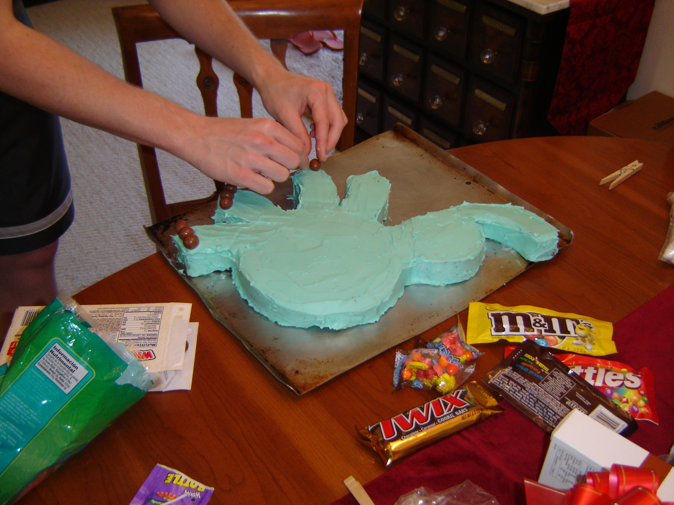 To be completely honest, this cake was the most elegantly decorated of all the Elephant Cake’s ever. Once the frosting was in place, Girl and Boy tackled the crafting of this delicious awesomeness.
